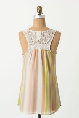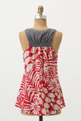 TTS, wearing my usual XS.  I really like the undergrowth tank; it is a fantastic casual option to your basic tank.  There is a lot of interest going on here between the striped front, floral back, and chambray top.  Plus, it is super comfy with a loose fit perfect for throwing on for a hot, summer day.  It's a wee sheer but a nude bra will suffice.  It is a cotton, polyester, nylon blend so don't expect longevity here (plus, it's a bit fussy requiring hand washing) but at second cut I would get this tank for casual weekend wear.