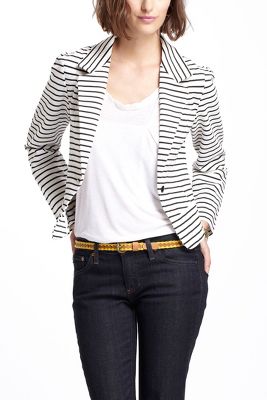 I really want a striped blazer in my closet and am sad I missed out on past renditions. I really want to love this blazer despite the synthetic materials. It has spandex which I really love in my blazer as they tend to be uncomfortable to move in without it. I'm not sure I would pay full price for this but so long as it looks as good on me as it does the model I will definitely make this a sale purchase.